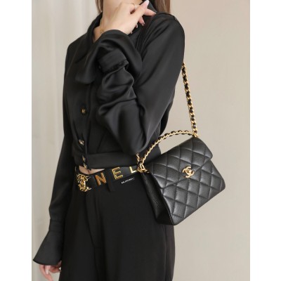 [홍콩명품.CHANEL] 샤넬 핸들 장식의 스몰 플랩백 페이턴트 카프스킨 골드 메탈 블랙 GD